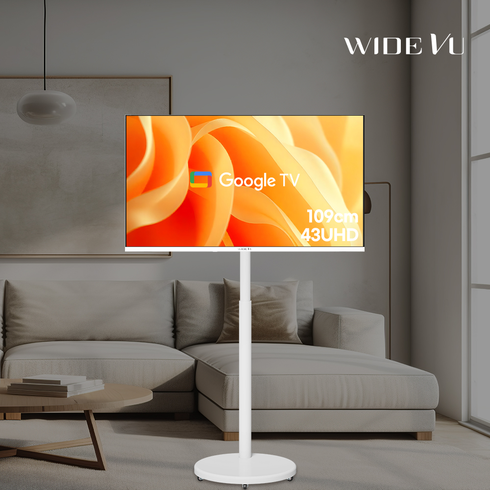 와이드무빙뷰 화이트에디션 유압식 높이조절삼탠바이미[V3] 셋트 43인치 UHD TV 구글 스마트 티비 중소바이미