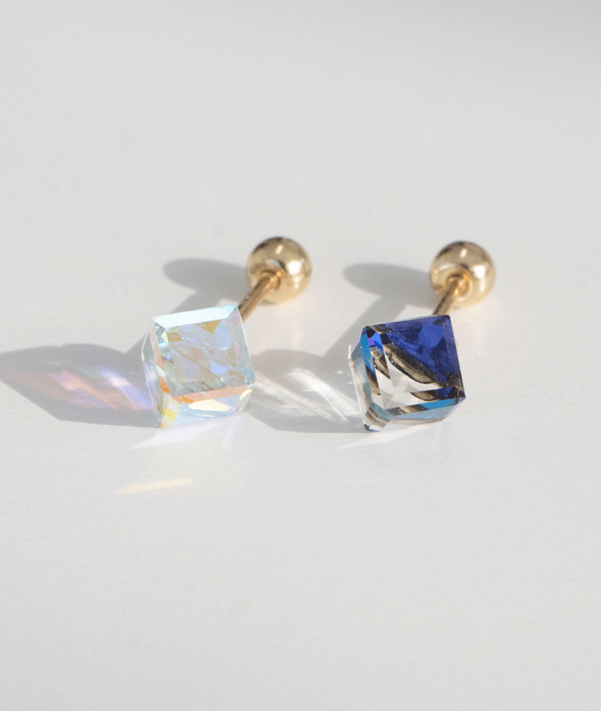 14K 프리즘 큐브 미니 골드볼 피어싱 바벨