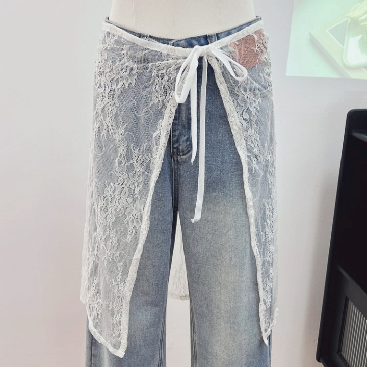 레이스 스커트 데님 레이어드 롱 3스타일