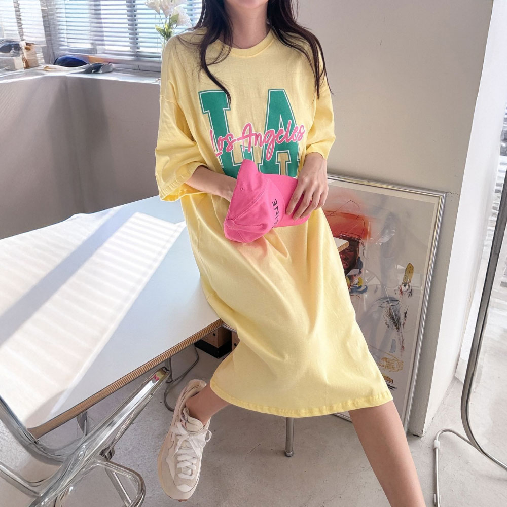 반팔 롱 엘에이 원피스 빅사이즈 다솜결