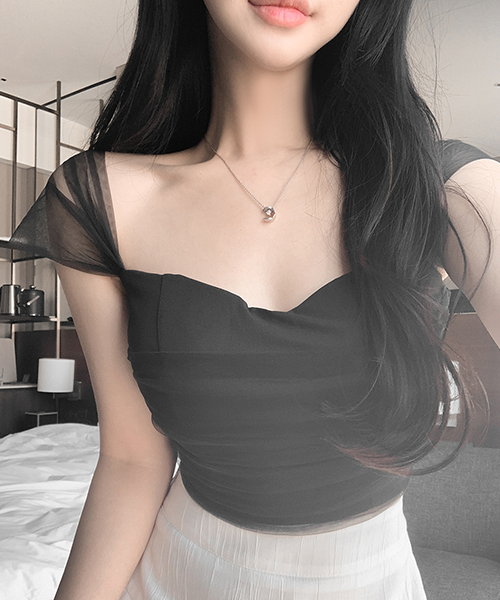 샤샤 망사 캡나시 블라우스 (브라캡부착형)