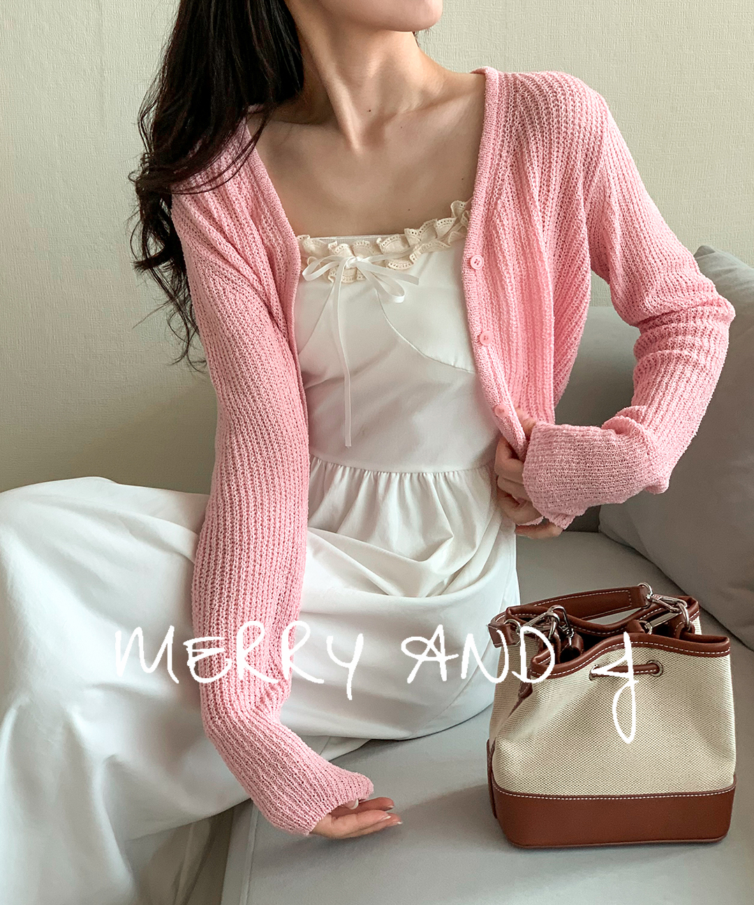러블리 여리무드 세미크롭 시스루 볼레로 가디건