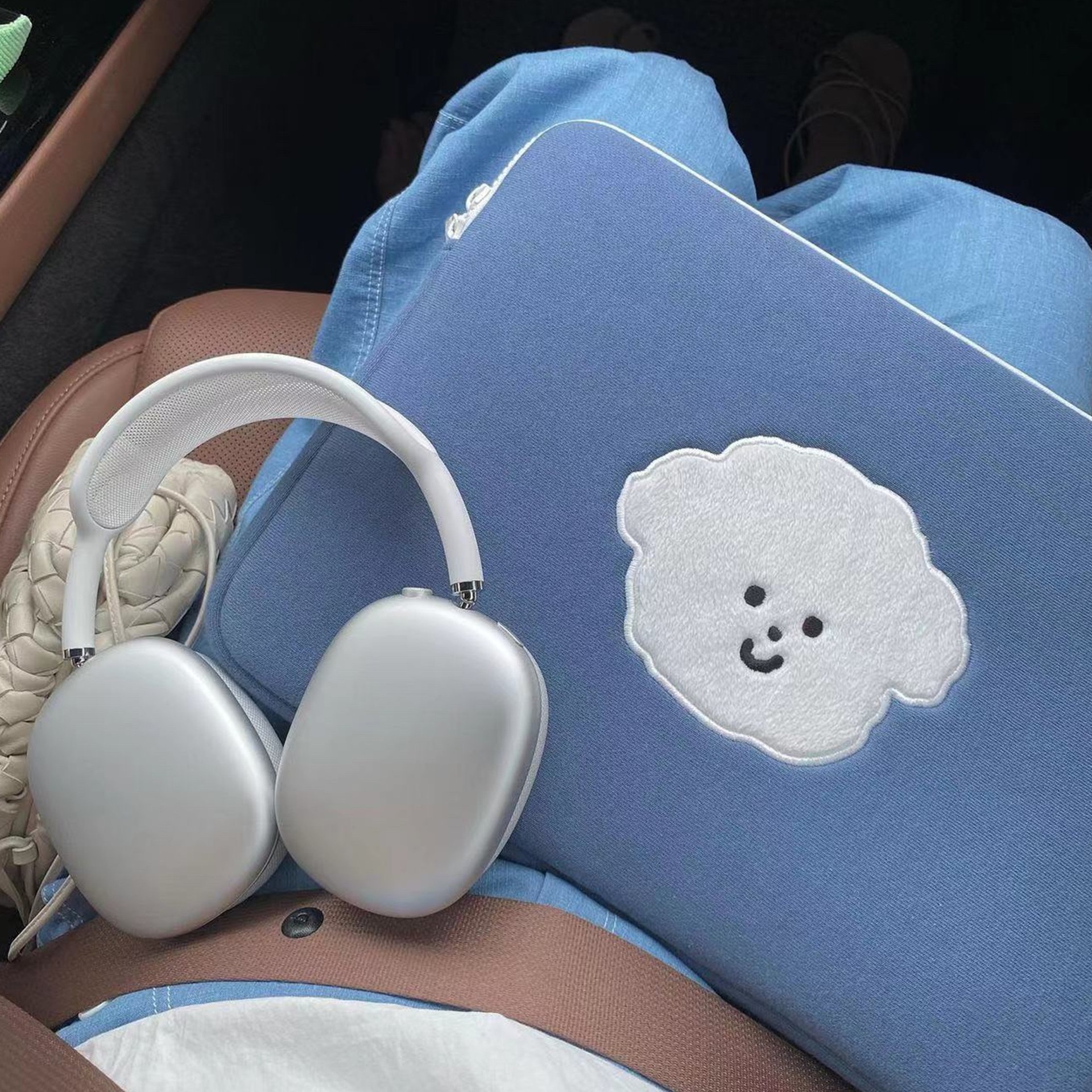 흰둥이 비숑 강아지 자수 블루 파우치 아이패드 노트북 수납