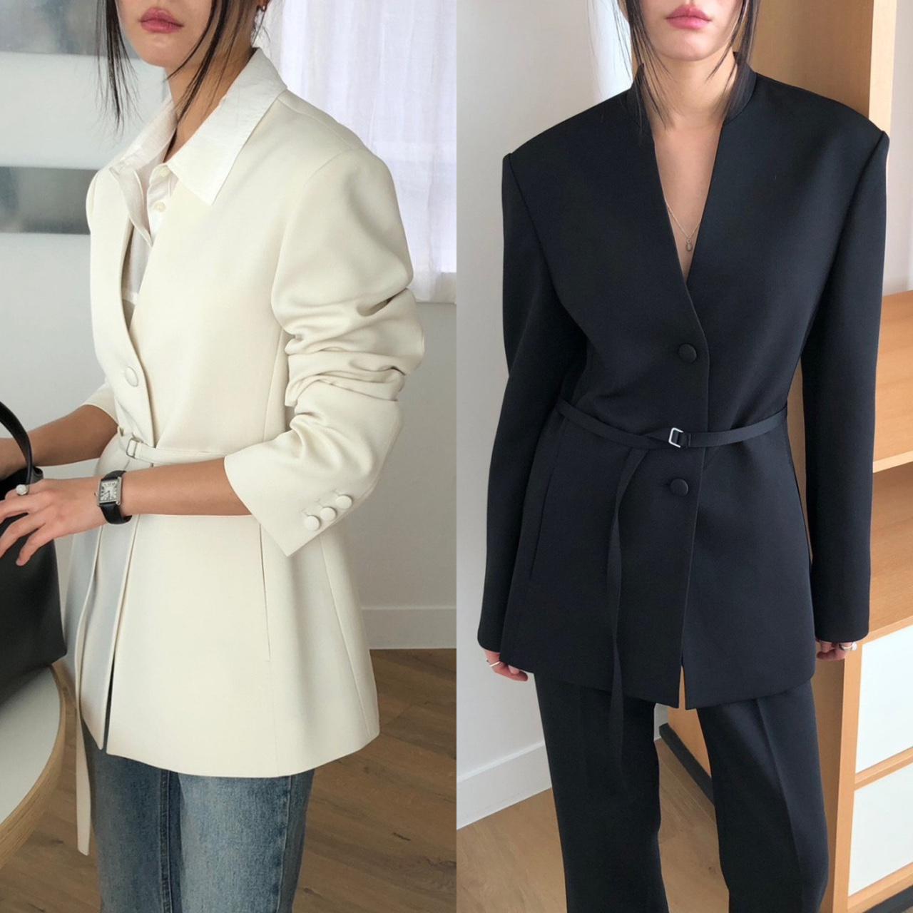 언더스탠딩 버킨 노카라 브이넥 벨티드 자켓