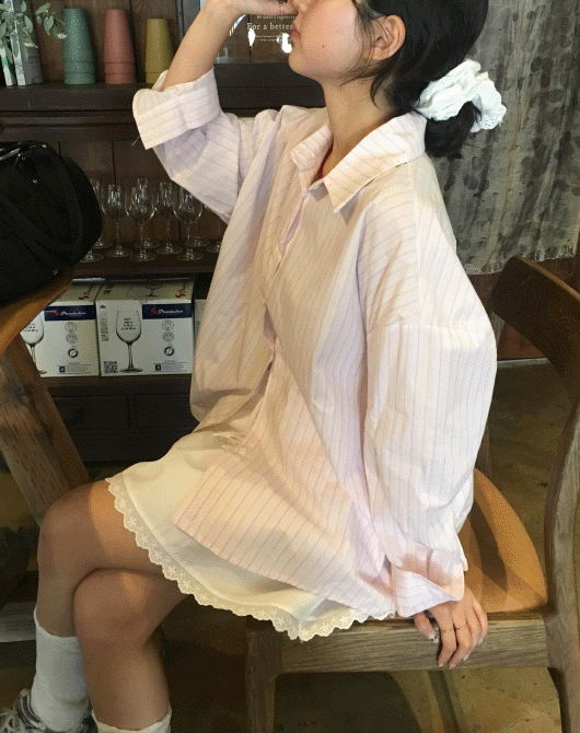 *주문폭주*추천! 시스터 스트라이프 오버 셔츠 (pink)