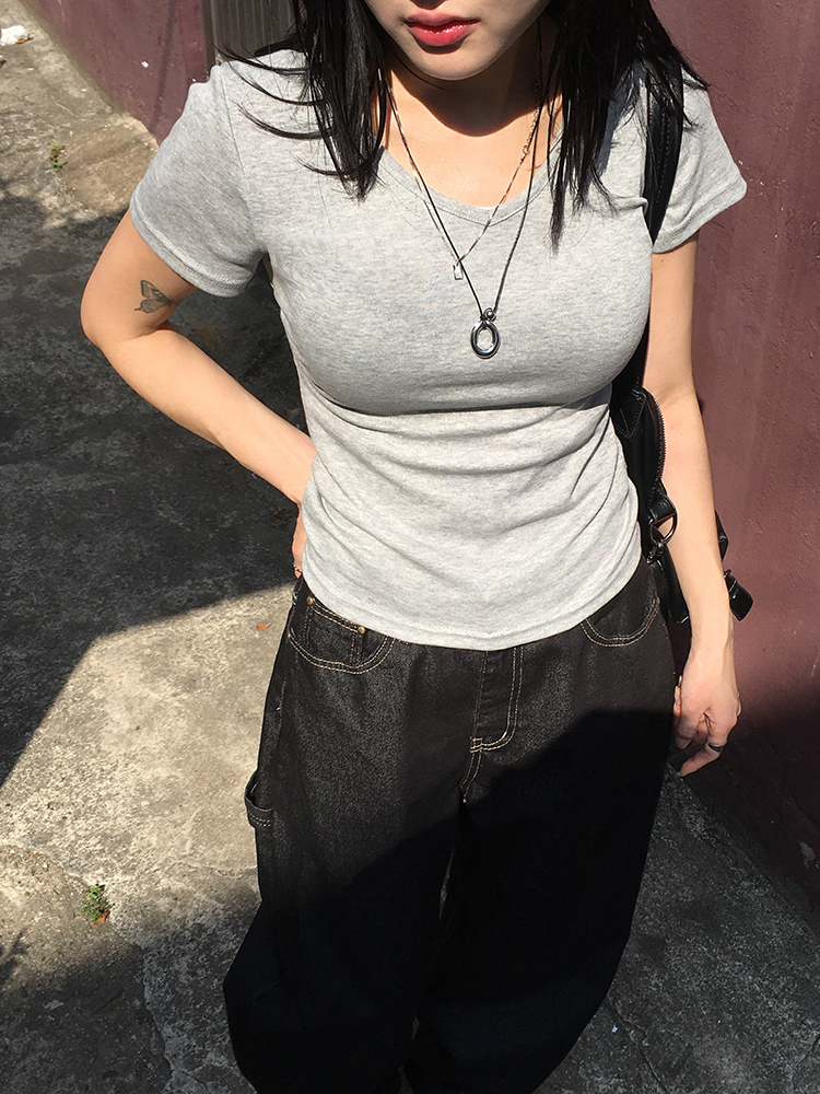 [1+1기획/6color] 필린 옆셔링 브이넥 슬림핏 반팔 티