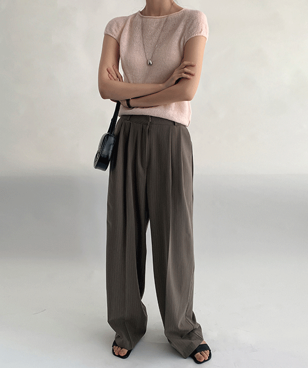 레디 스트라이프 와이드 슬랙스 (khaki)