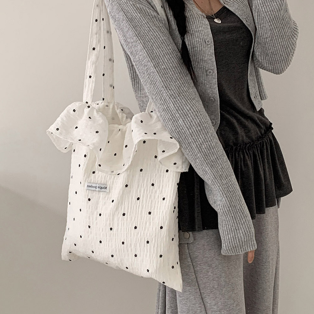 바베밍 플라워 패턴 프릴 봄 가을 대학생 러블리 숄더백 가방