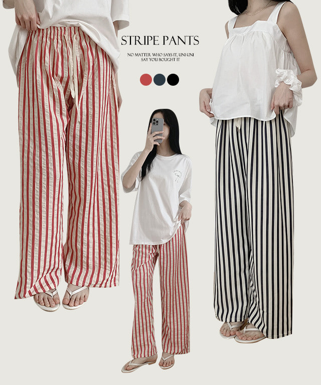 코이 스트라이프 와이드 밴딩팬츠