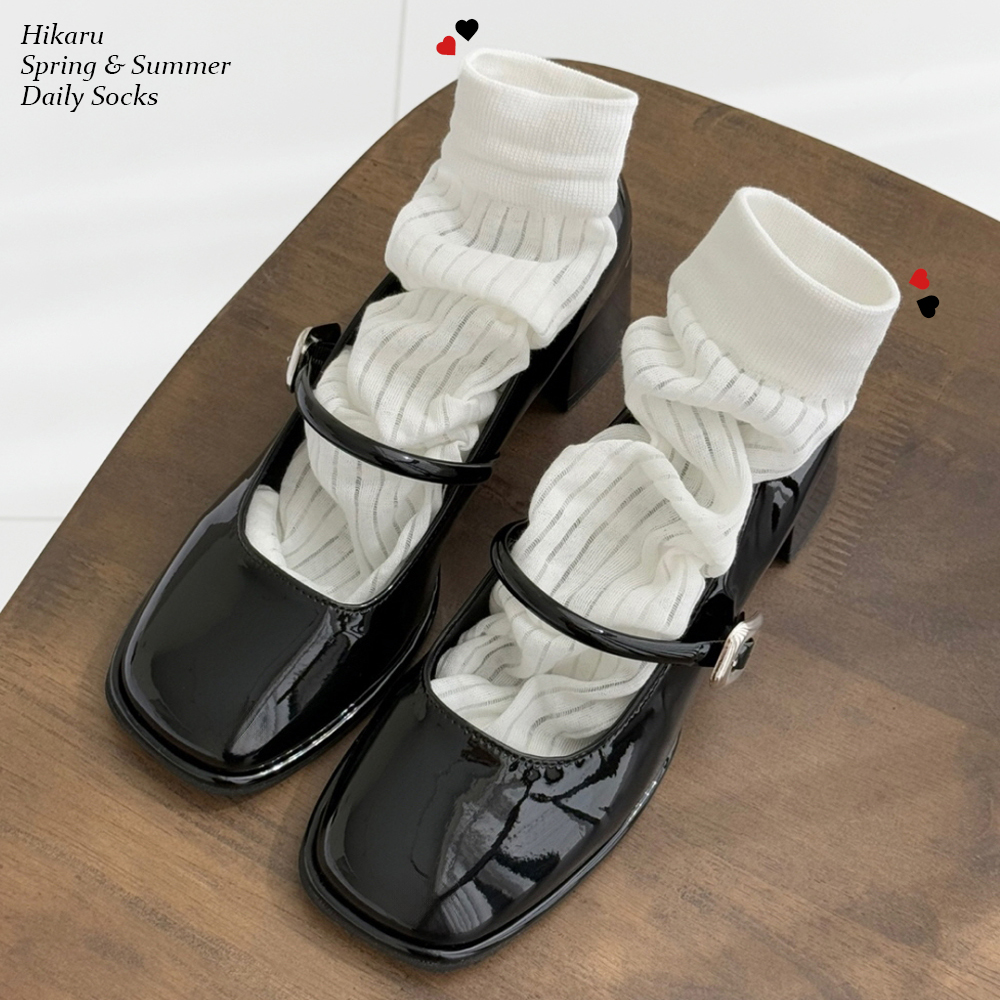 [ 재구매템 / 4color ] 히카루 봄 여름 데일리 시스루 골지 심플 무지 세로 중목 장목 양말