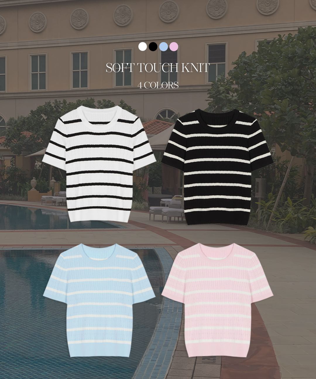 [단독][🌈4color][핫핑여리핏] 뮤리드 케이블 단가라 반팔니트 (44-77) (빅사이즈상의-체형커버-꽈배기-케이블-세미크롭-라운드넥-베이직-반소매니트-루즈핏-단가라니트)