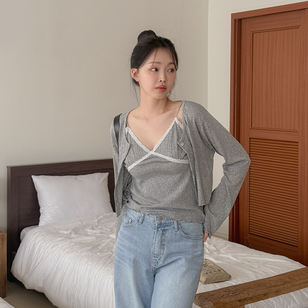 [빅사이즈]이블렛 뮤렌뷰 레이스 나시 가디건 SET 제이스타일