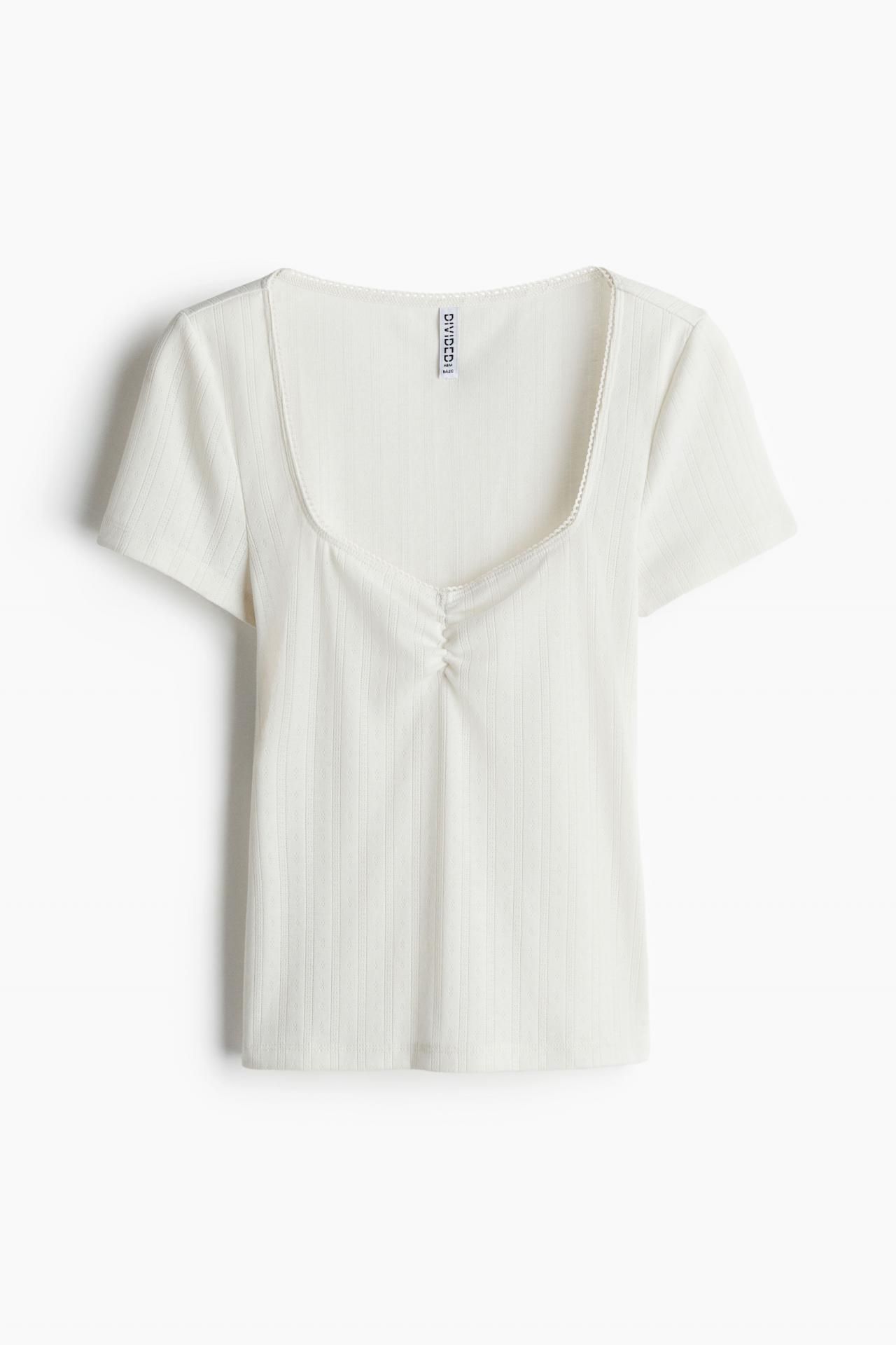 에이치앤엠 피코트 트림 티셔츠 1272517002 CREMA