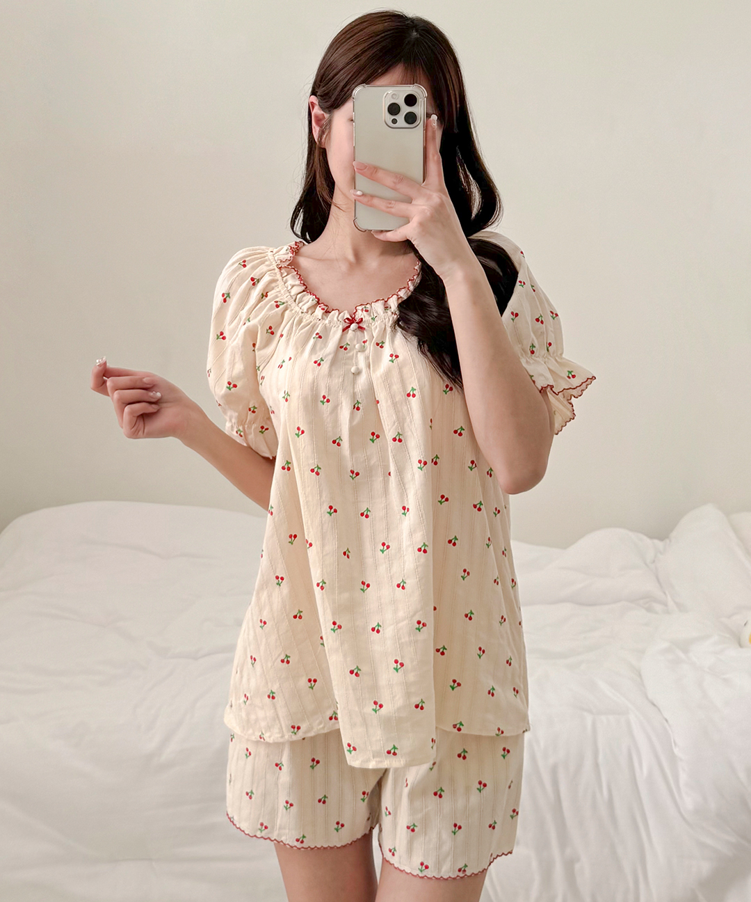 체리닝 반팔 반바지 투피스 잠옷 세트