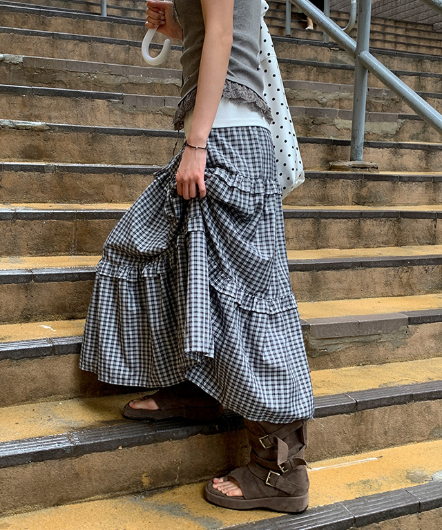 [MADE] 줄리안 체크 셔링 캉캉 스커트
