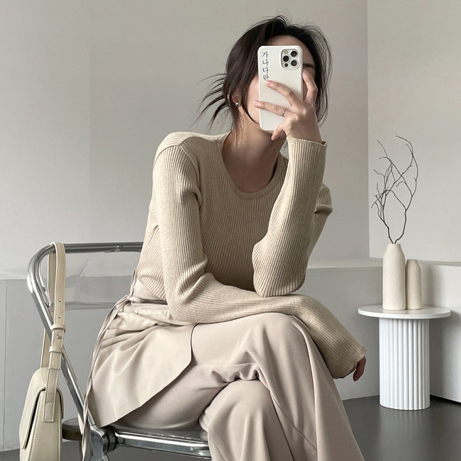 [만능템/여리여리🪞] 가나다란 모엔 라운드넥 편안한 여리핏 베이직 기본 무지 골지 니트 5color