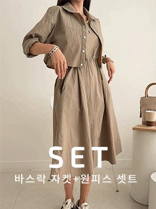 자켓 하나 가격에 원피스까지~! 바스락 소재로 트렌디함을 주는 크롭자켓+ 슬리브리스 원피스