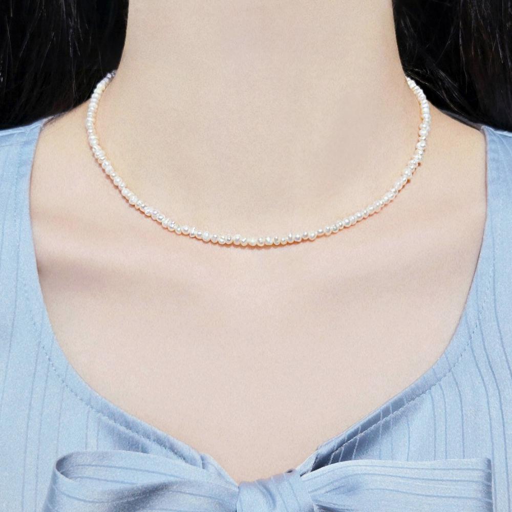 실버925 미니 좁쌀 쌀알 천연 담수 진주 목걸이