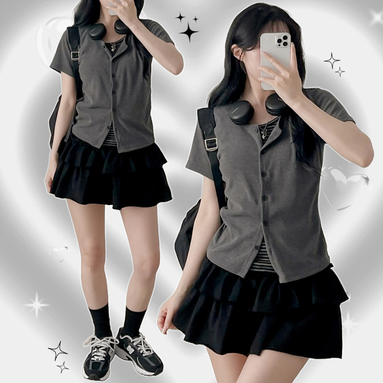[여리핏/일체형!]단가라 레이어드 반팔 가디건