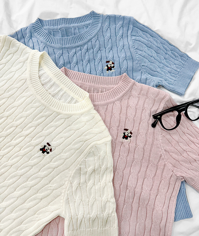댕댕이자수꽈배기반팔니트-SS