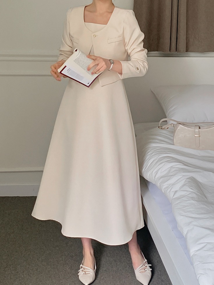 [프리미엄원단✦/고급미] [44-120] 프레트닌 트위드 크롭 자켓 뷔스티에 원피스 투피스 세트 (끈조절) (신상-봄-가을-하객룩-격식룩-데이트룩-자켓세트-원피스세트-자체제작-투피스-크롭-셋업-투피스세트)