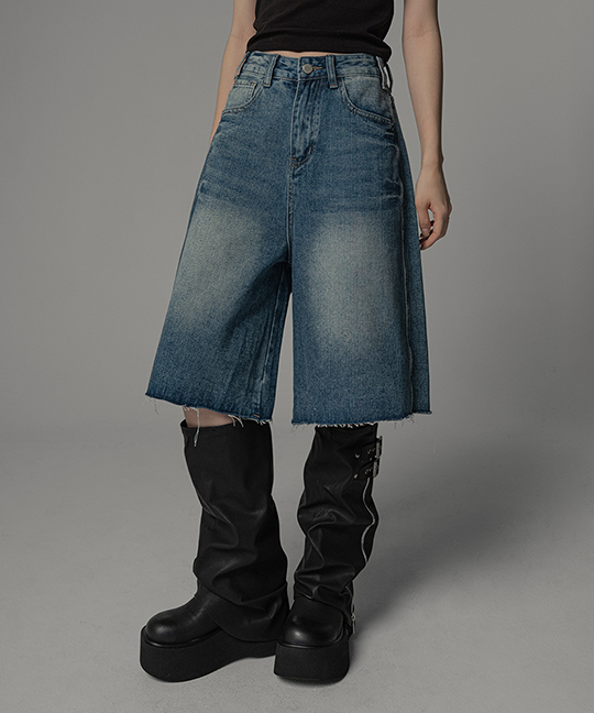 [MADE] 피츤 버뮤다 컷팅 와이드 데님 팬츠 CUT-OFF HALF DENIM SHORTS