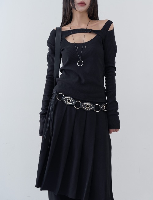 rivet one shoulder slit tee