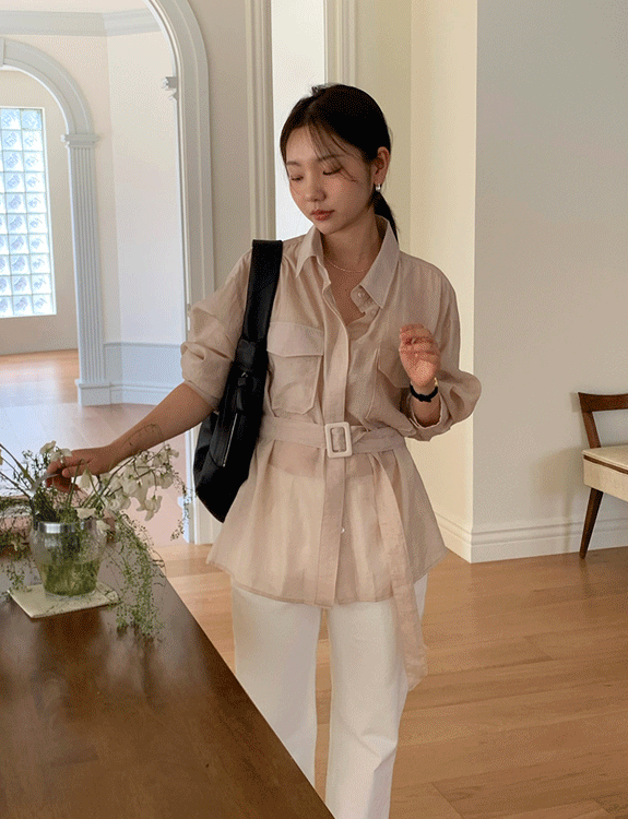 [🏆BestSelling][블라우스/하객룩/봄하객룩/데일리룩/고급스러운소재]에디터 벨트 블라우스