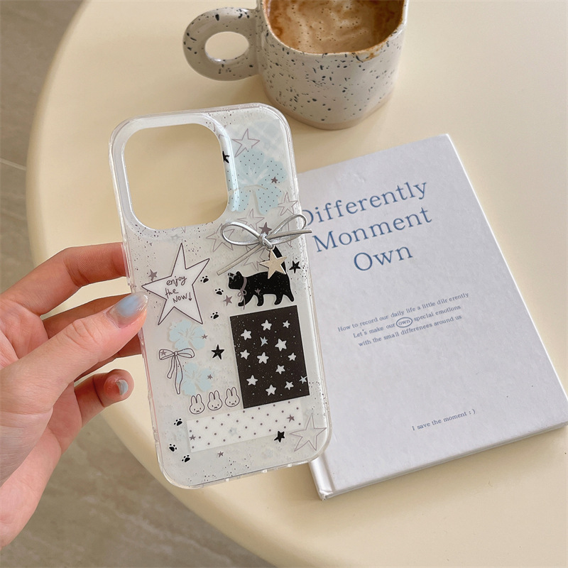 [주문제작] 하이틴 입체 리본 실버 별 고양이 도트 연블루 아이폰케이스 하드 범퍼