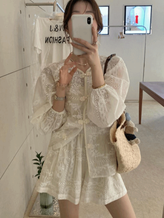[루즈핏🌼/1000장완판!] 로맨틱한 감성! 로아 봄 여름 플라워 자수 팬츠 레이스 투피스