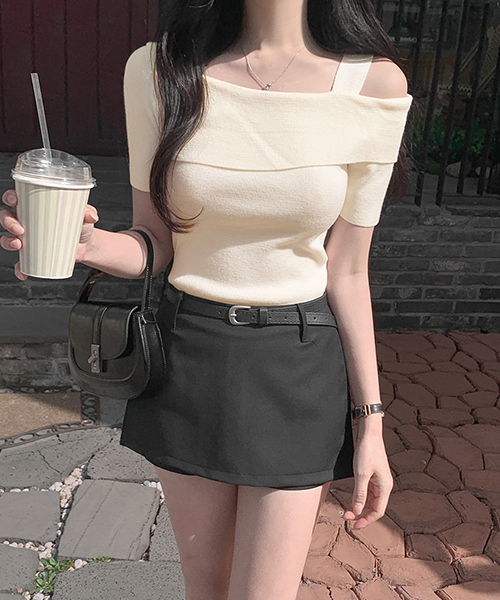 디엔 언발 오프숄더 반팔 니트