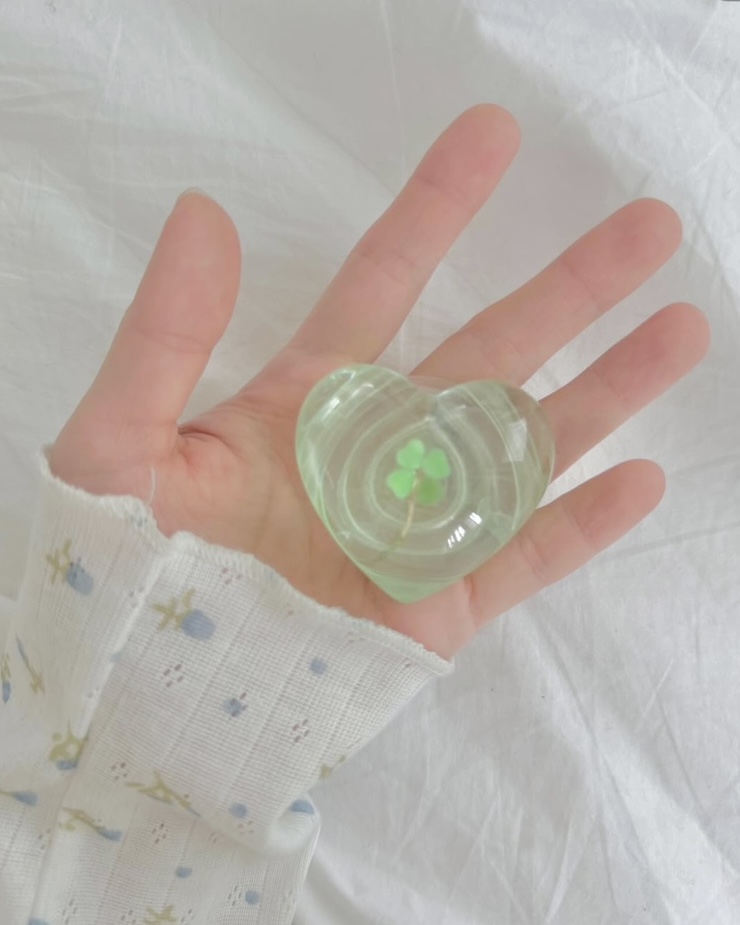 🍀🍃네잎클로버 하트 레진 맥세이프 스마트톡 – 싱그러움 가득한 투명 그린의 행운
