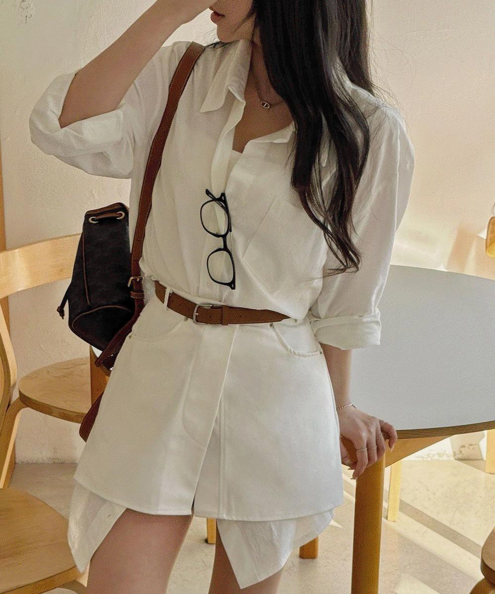 [2color/투웨이] 랩 데님 셔츠 미니 원피스