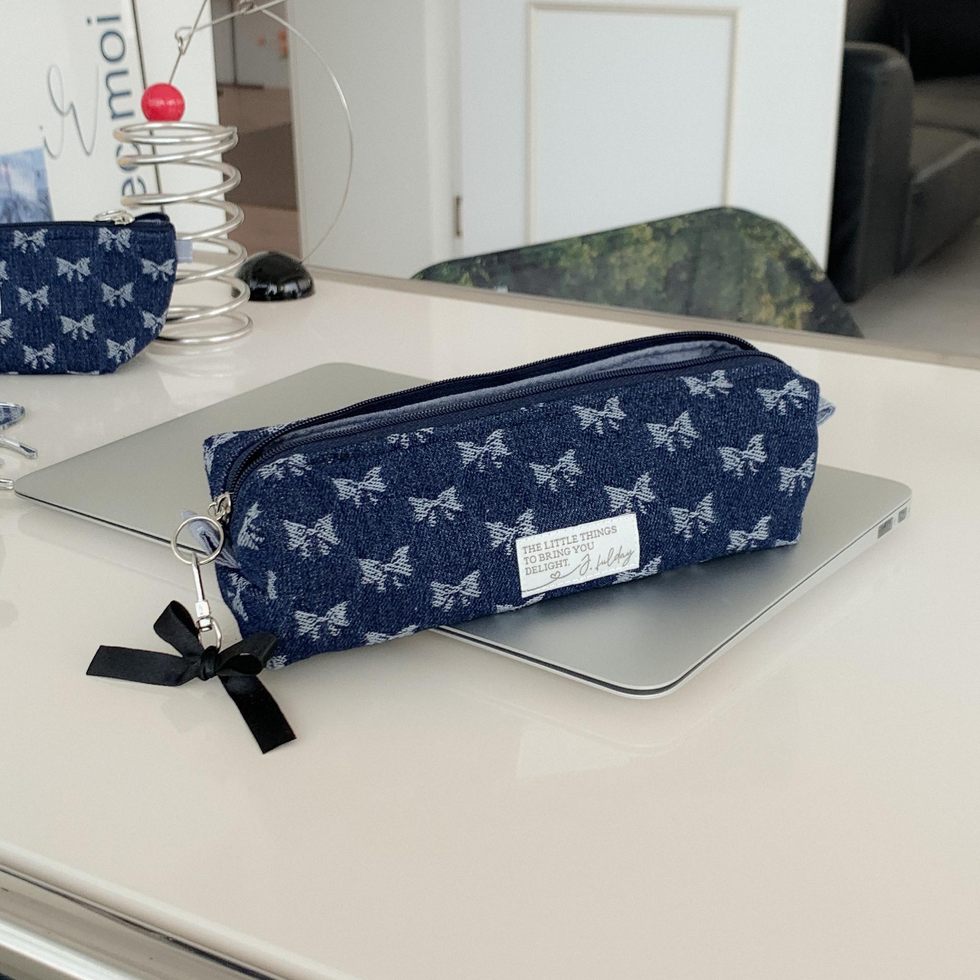 handmade˚。⋆리본바게트필통 데님리본필통 천필통 패브릭필통 봉제 큰필통 학생필통 펜케이스 색연필파우치 펜파우치