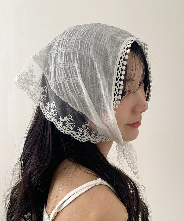 레이스 웨딩 여리 헤드 커치프 두건 스카프 2color