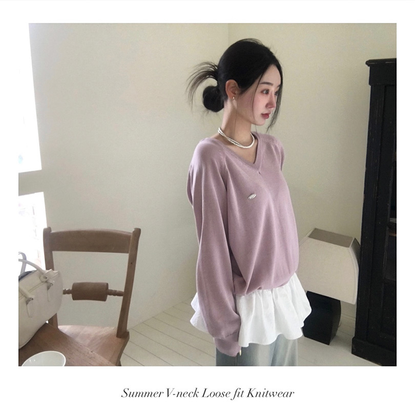 [MADE/살안타템]실루엣 써머 브이넥 루즈핏 니트
