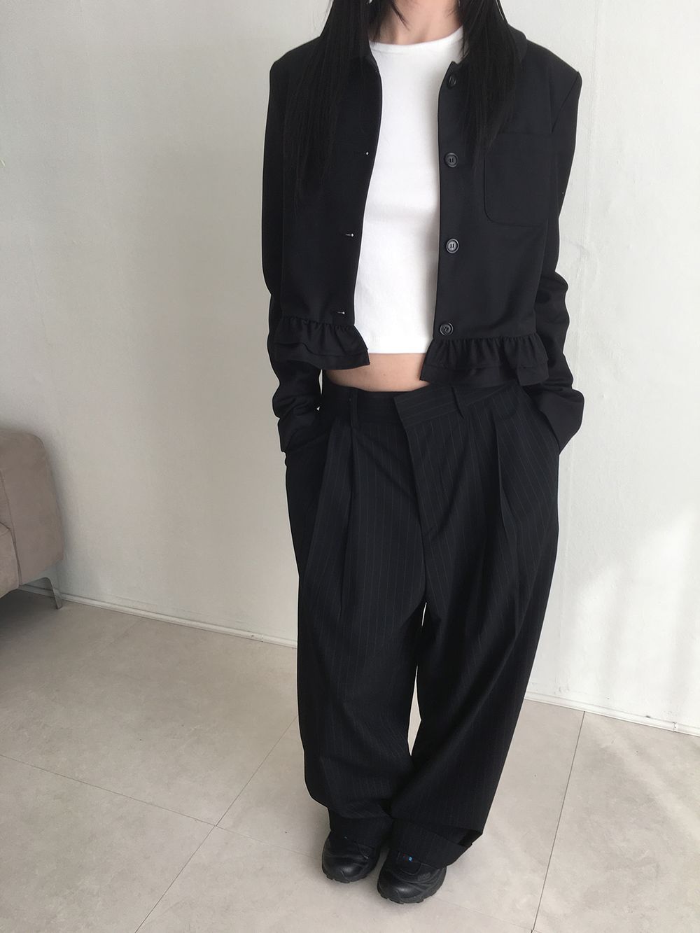 (울버전 출시🔥)스트라이프 투턱 와이드 슬랙스(2colors)