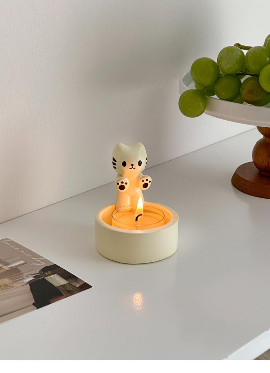 귀여운 고양이 캔들 홀더 인센스 콘 미니 양초 촛대 받침대 흰둥이