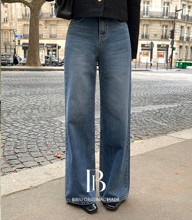 [B-MADE]군살삭제 와이드 팬츠(4color) [데님 코튼 후들 연청 진청 화이트 블랙 사계절 가을 간절기 긴바지]