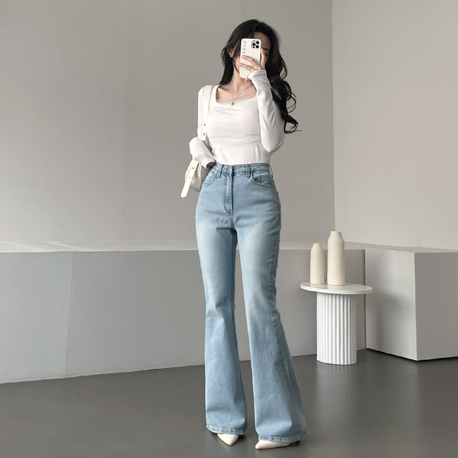 [롱다리핏👖/라인보장] 가나다란 피크 하이웨스트 연청 워싱 부츠컷 데님 팬츠