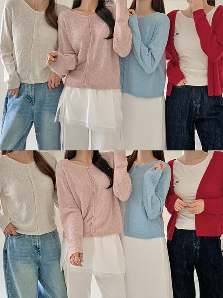 [3천장 돌파✨][여리핏♥][44-120] 베리틸 부클 라운드넥 투웨이 니트 가디건 (신상-봄-데이트룩-출근룩-데일리룩-빅사이즈-120사이즈-자체제작-간절기-초여름-얇은가디건-얇은니트-루즈핏-유니크 )