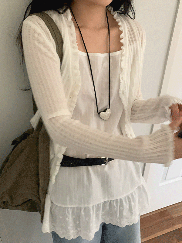 피요코 골지 프릴 레이스 레이어드 니트 가디건