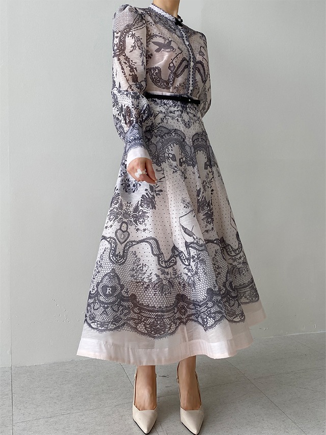 꼬르조 패턴 블라우스 스커트 투피스 (벨트 SET)