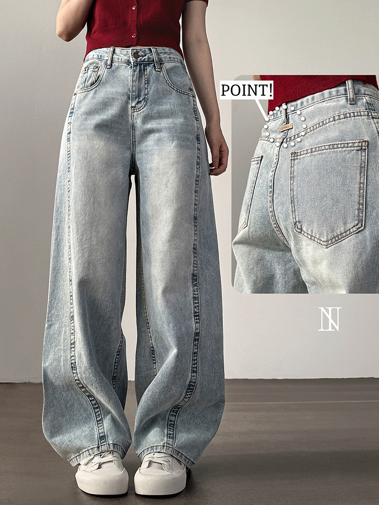 당일출고🚀[숏,롱ver/unique] 하이웨스트 연청 절개 벌룬 루즈핏 와이드 데님팬츠