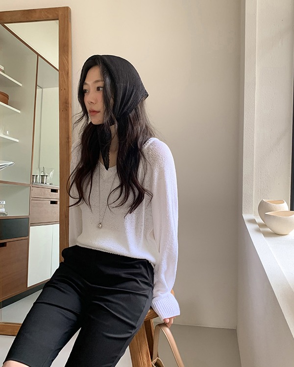 모메 썸머 브이넥 루즈 니트