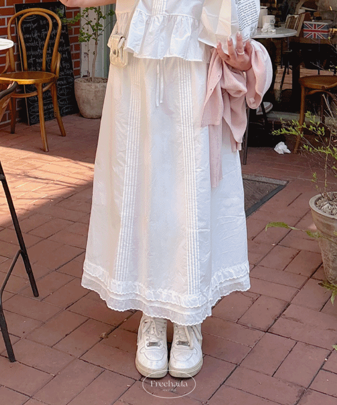 [문의폭주] 피크닉 핀턱 밴딩 롱스커트 빅사이즈 치마 빅사이즈 하객룩 벚꽃룩