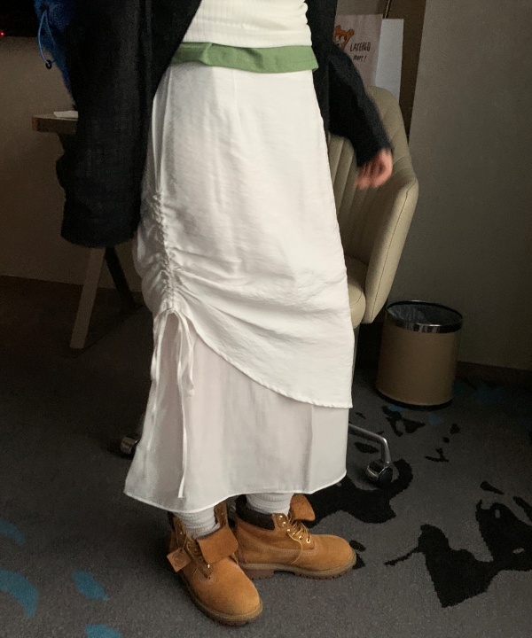 [하객룩🎀/캐주얼무드] 모즈 언발란스 셔링 이중 레이어드 롱 시스루 스커트 긴치마 2 color