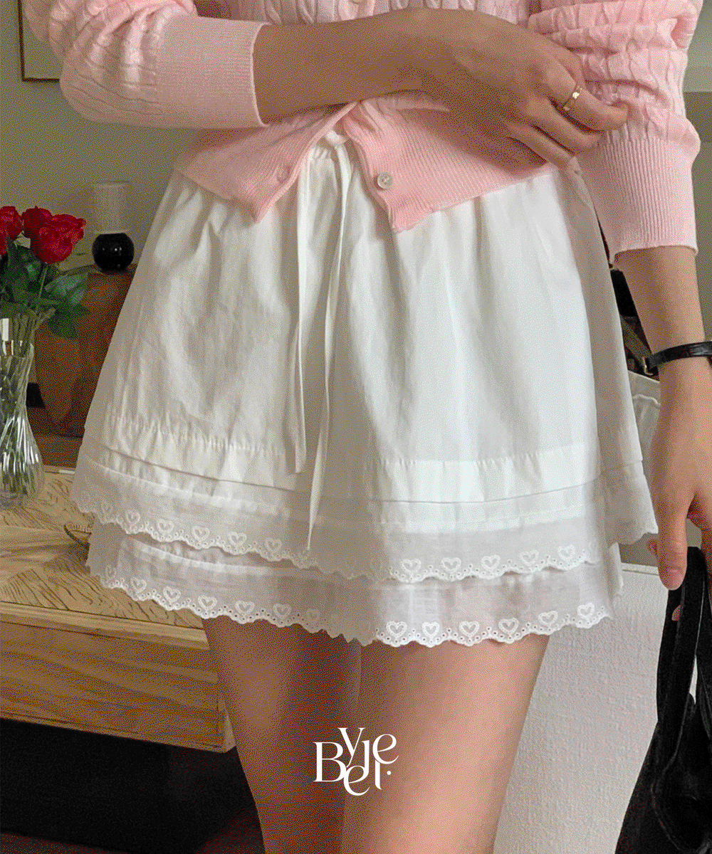 [3사이즈💗][치마바지] 단독 하트 레이스스커트 밴딩스커트 캉캉스커트 미니스커트 화이트스커트 여름치마