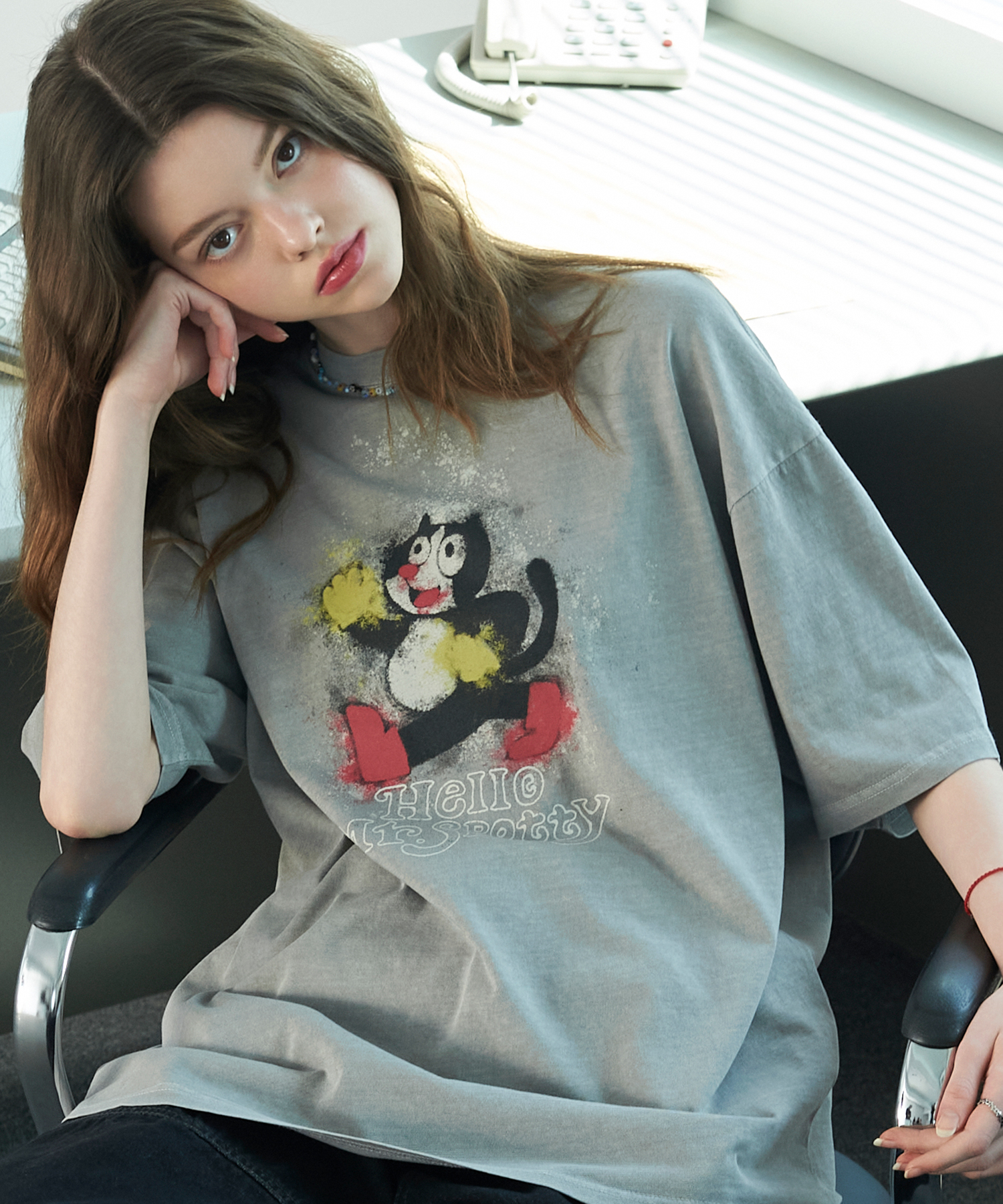 HELLO SPOTTY 피그먼트 반팔티 고스트그레이