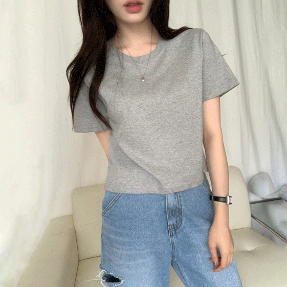 낙낙한핏&반크롭 뉴썸 라운드넥 베이직 코튼 크롭 반팔티 5color [무지반팔/면반팔/루즈핏반팔티/여유핏반팔티/낙낙한핏/66반팔/77반팔/버터반팔/크림반팔]]